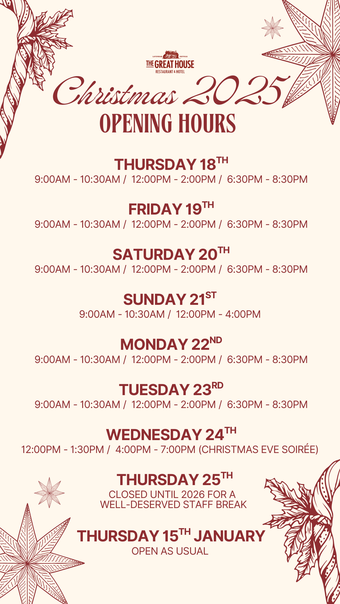Whether you’re squeezing in a pre-Christmas meal, a relaxed drink, or a long-overdue get-together, we’re here to make it special. Join us, soak up the seasonal atmosphere, and celebrate the end of the year with great food, great company, and a little extra time to enjoy it all.